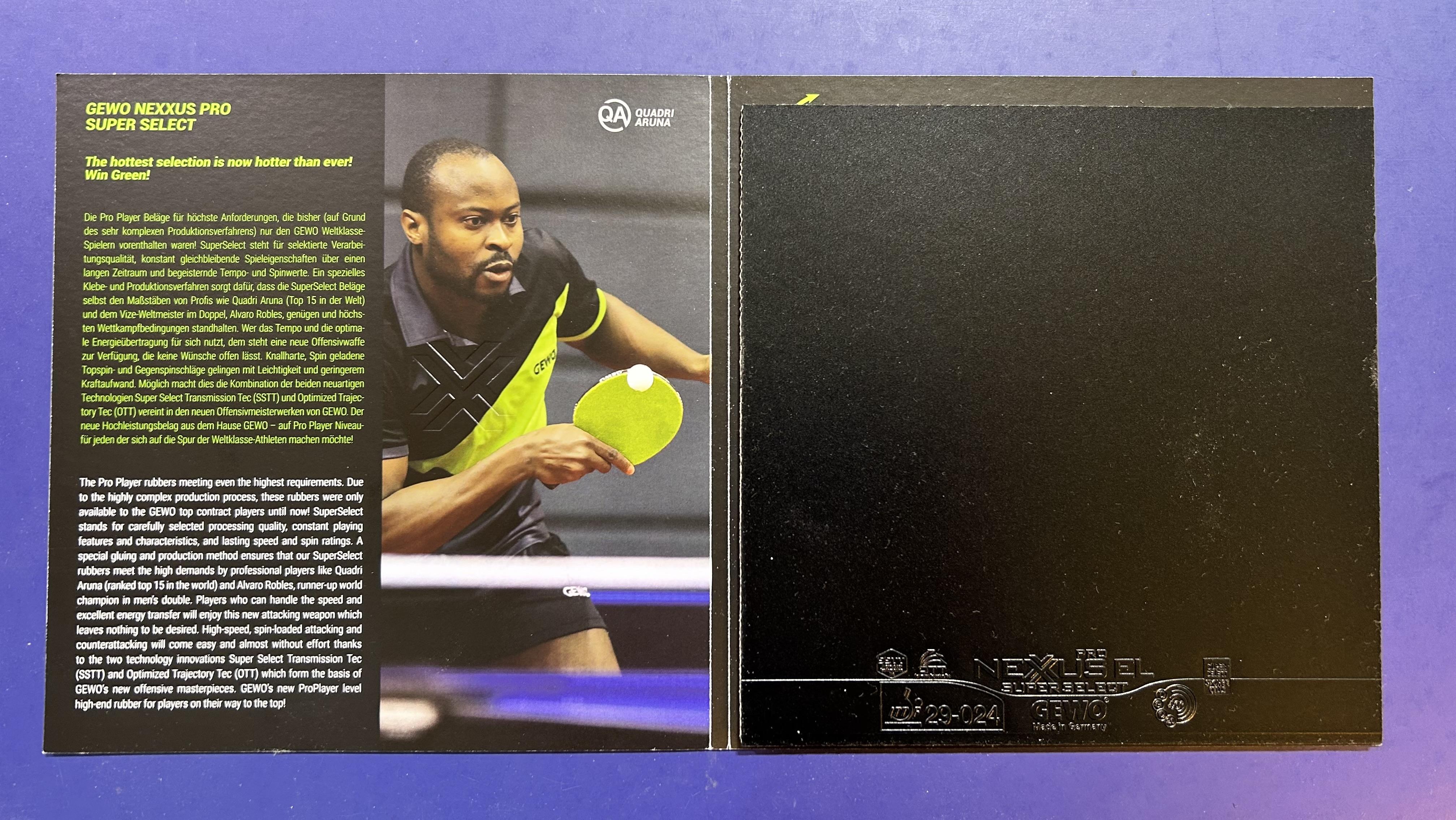 Arra gondoltunk, hogy a következő asztalitenisz-borítás teszt középpontjában legyen mindenképpen egy olyan termék, ami több szempontból is különleges. Nem kellett hosszasan gondolkodnunk, hiszen a GEWO legújabb, 2022-ben piacra dobott Nexxus SuperSelect borítás családja több szempontból is érdekesnek ígérkezett. Mit takarhat egészen pontosan, ha egy borítás „gondosan kiválasztott alapanyagokból készül” (erre utal a „SuperSelect” elnevezés) kizárólag fekete, illetve rikítózöld színben, továbbá olyan nagyágyúk is használják, mint az igencsak egyedi stílusban játszó nigériai Quadri Aruna vagy a spanyol Alvaro Robles? Milyen hatással vannak a játékra az a GEWO elsőre marketing-fogásnak tűnő SSTT (SuperSelect Transition Tec – optimalizált rotáció- és sebesség átadás) és OTT (Optimized Trajectory Tec – optimalizált röppálya) újonnan fejlesztett technológiák? Ennek igyekeztünk utánajárni egy, a megszokottnál hosszabb, tartós teszt során.