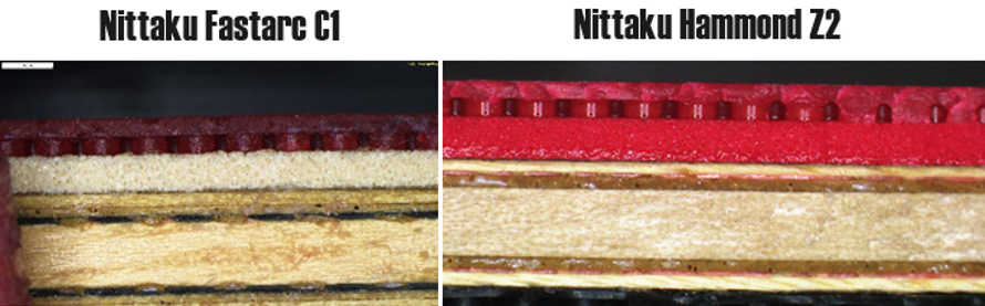 Mikroszkóp alatt összevetve a borítást a Nittaku Fastarc C1-essel: