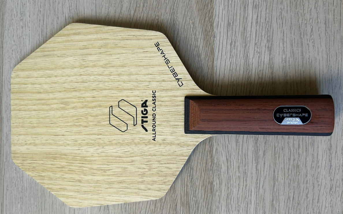 A Stiga Allround Classic 1967 óta sokak kedvenc ütőfájaként van jelen a piacon. A modernizált Cybershape verzió azonnal szemet szúr szokatlan, hatszögletű dizájnjával, amely eltér a hagyományos kerek vagy leginkább ovális ütőformáktól. A forma nem csak esztétikai szempontból különleges, de funkcionálisan is tartogat újdonságokat. Az alapvetően első érzetre marketingfogásnak tűnő formavilágnak köszönhető egyik legnagyobb technológiai előny az általa nyújtott lényegesen nagyobb „sweet spot”: az ütőfa azon felülete, ahol a labda találati pontja optimális érzést és kontrollt biztosít. Az aerodinamikus kialakítás csökkenti a légellenállást, ezáltal gyorsabb mozdulatokat tesz lehetővé anélkül, hogy a játékos elveszítené a labda feletti kontrollt. A Cybershape tulajdonságai a modern asztalitenisz dinamikájához igazodnak, ahol a gyors reakcióidő és a precizitás kulcsfontosságú. A tesztelés során nemcsak a forma és a technológia, hanem az ütőfa teljesítménye és sokoldalúsága is bizonyította értékét. Egy korábbi bejegyzésünkben maradéktalan összefoglalót találtok a Cybershape technológia nyújtotta újdonságokról: